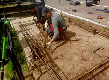После сборки каркаса монтируем опалубку и заливаем её бетоном.