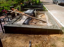 Укрываем место захоронения геотекстилем и приступаем к сборке и установке памятников.