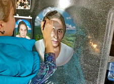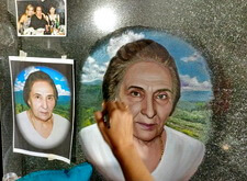 Далее этот же мастер окрашивает портрет и покрывает лаком.