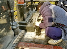 Приступаем к работе с цветниками. Один уже был в наличии, поэтому делаем второй, идентичный. По проекту цветники должны смотреться одинаково даже несмотря на то, что памятники будут разные. В это же время укладываем гранитную брусчатку уже на территорию места захоронения.